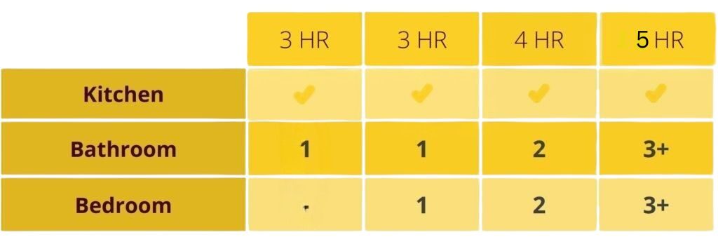 Deep Cleaning– A deep cleaning normally includes at least your kitchen and bathroom, and may include every room in your home. There’s no one size fits all for a deep cleaning service and it’s up to you which rooms and items are cleaned. Simply discuss your needs with your cleaner before they start. A deep cleaning usually takes an additional hour more than a standard rate for your size home.